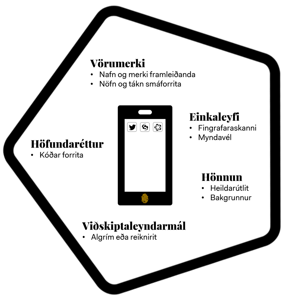 Útlit vöru eða hluta af vöru, þ.e. lögun, litir, mynstur o.fl.